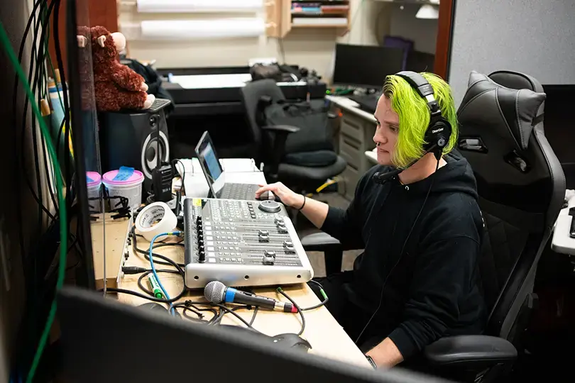 “As a student, I was relieved to find that the classes all had practical skills for the students, rather than just theory or lectures,” said McKenzie-Bahr. “Having the classes tied so closely to the Falcon’s Eye performances meant that students could learn a skill and practically apply it within the same semester on a real production. I feel very fortunate that the skills I learned in class are the same ones that got me my career.”