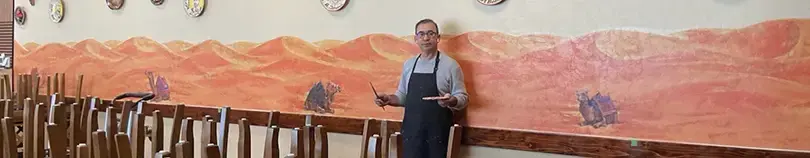At Caravan Uzbek Cuisine in Citrus Heights, a panoramic mural stretches across the interior. Uzbek architecture. Desert landscapes. Caravan riders moving slowly across history.