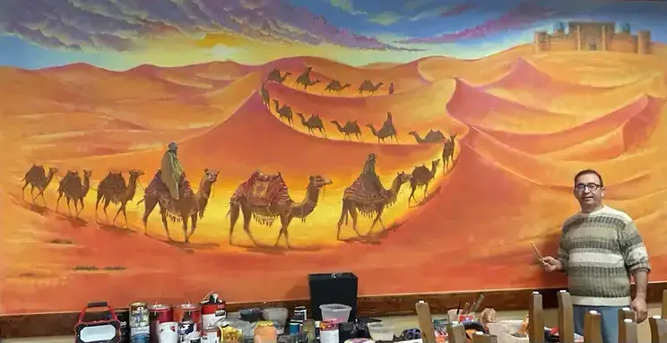 The project demanded the same habits he learned decades earlier in theater: research, accuracy, patience. He studied traditional clothing, architectural details, Central Asian geography. Uzbekistan’s role in the Silk Road the connection between East and West became a quiet narrative running through the mural.